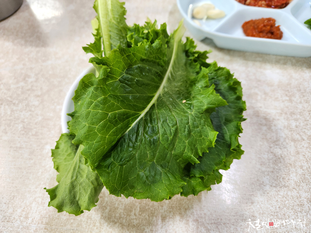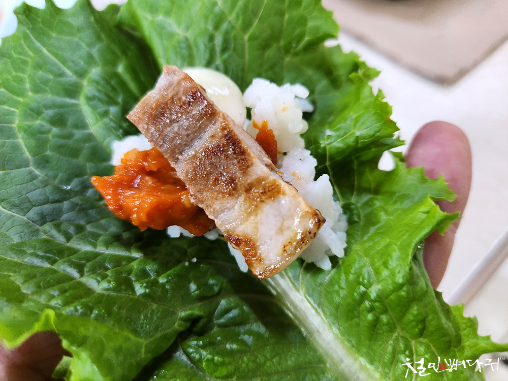 상추에 쌈 싸 먹으면, 맛있습니다.