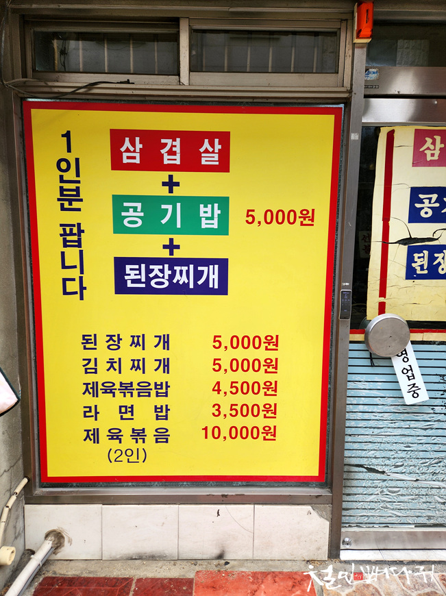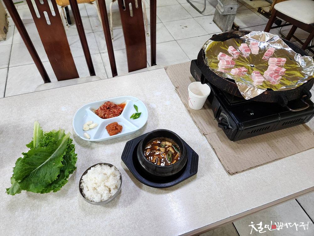 1인분 백반인데, 삼겹살 + 된장찌개 + 공깃밥