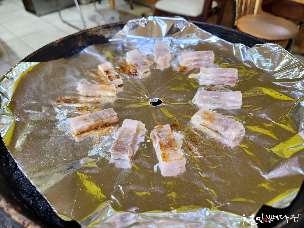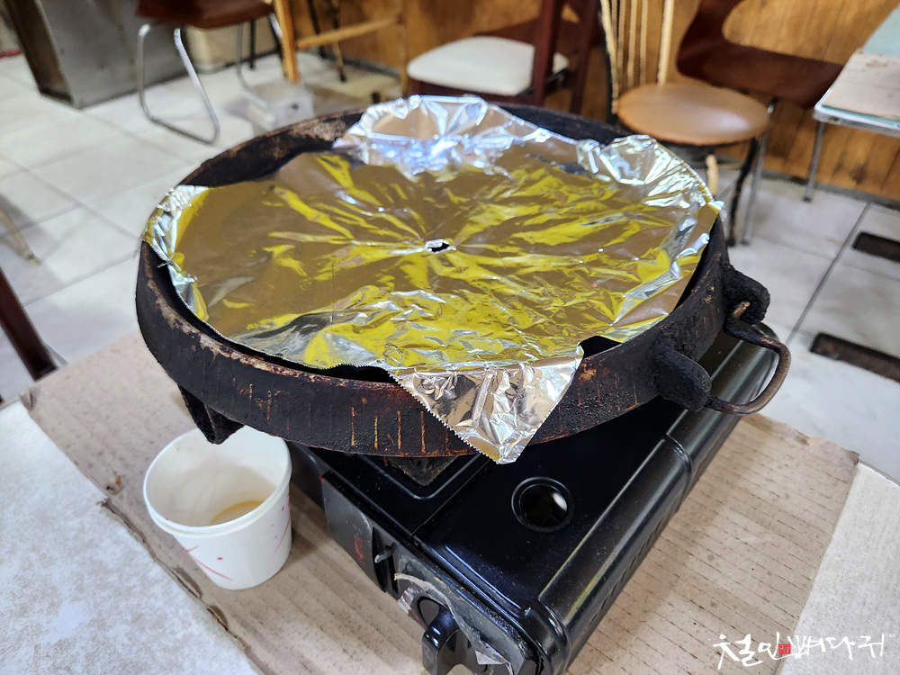 테이블에는 호일이 깔려있는 불판이 준비되어 있습니다.
