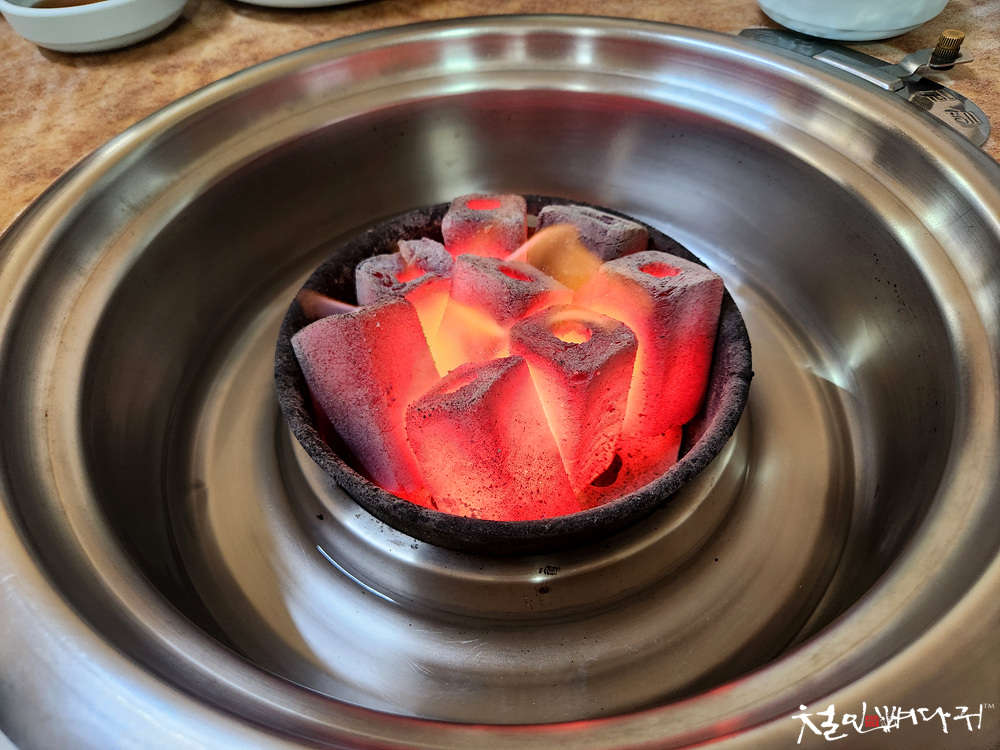 숯불이 올려집니다.