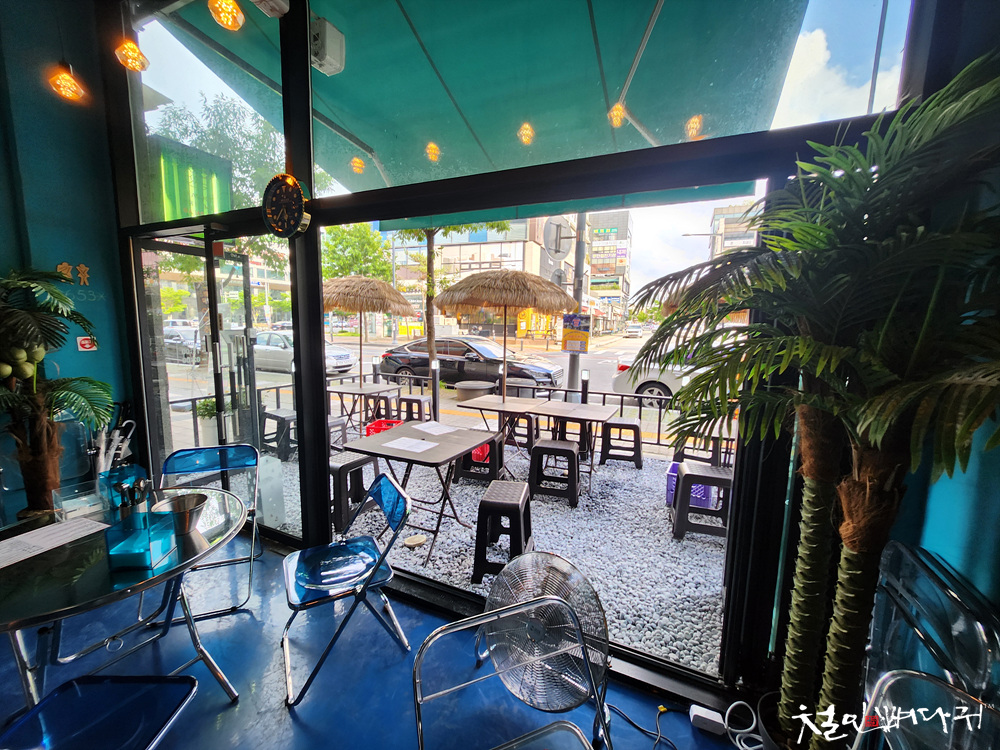 매장 안 분위기는 약간 하와이나, 열대지방의