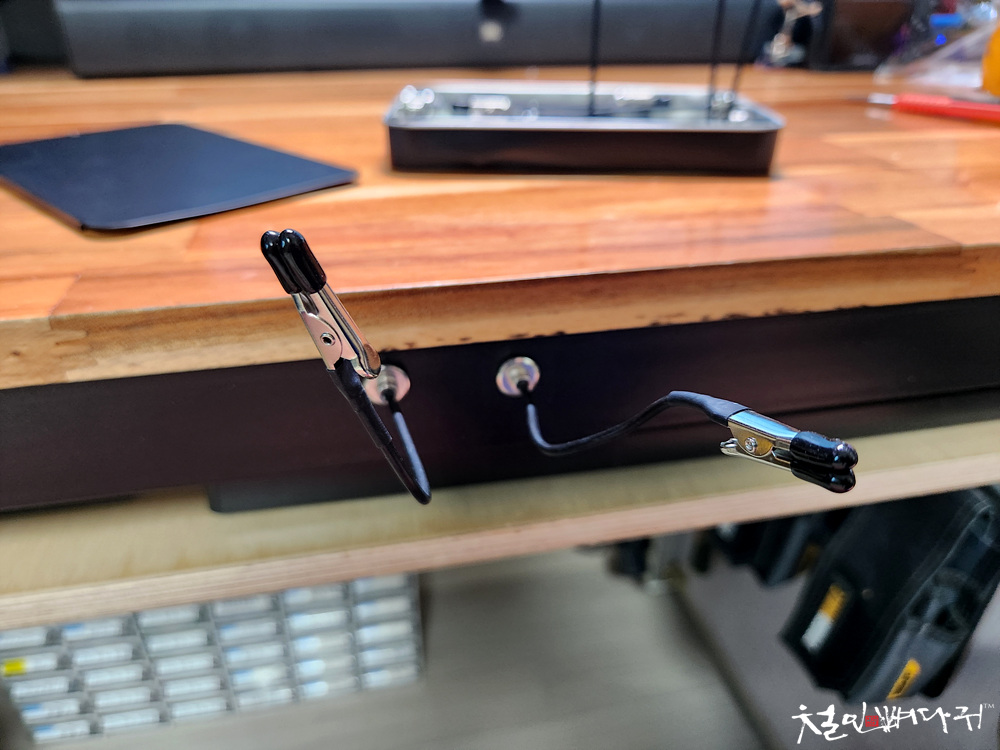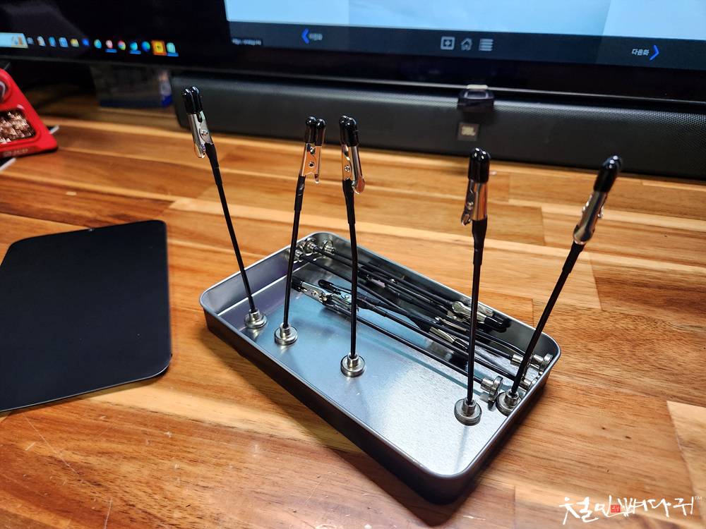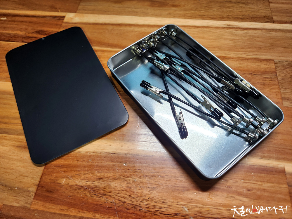 악어클립들인데, 반대쪽은 자석으로 되어 있습니다.