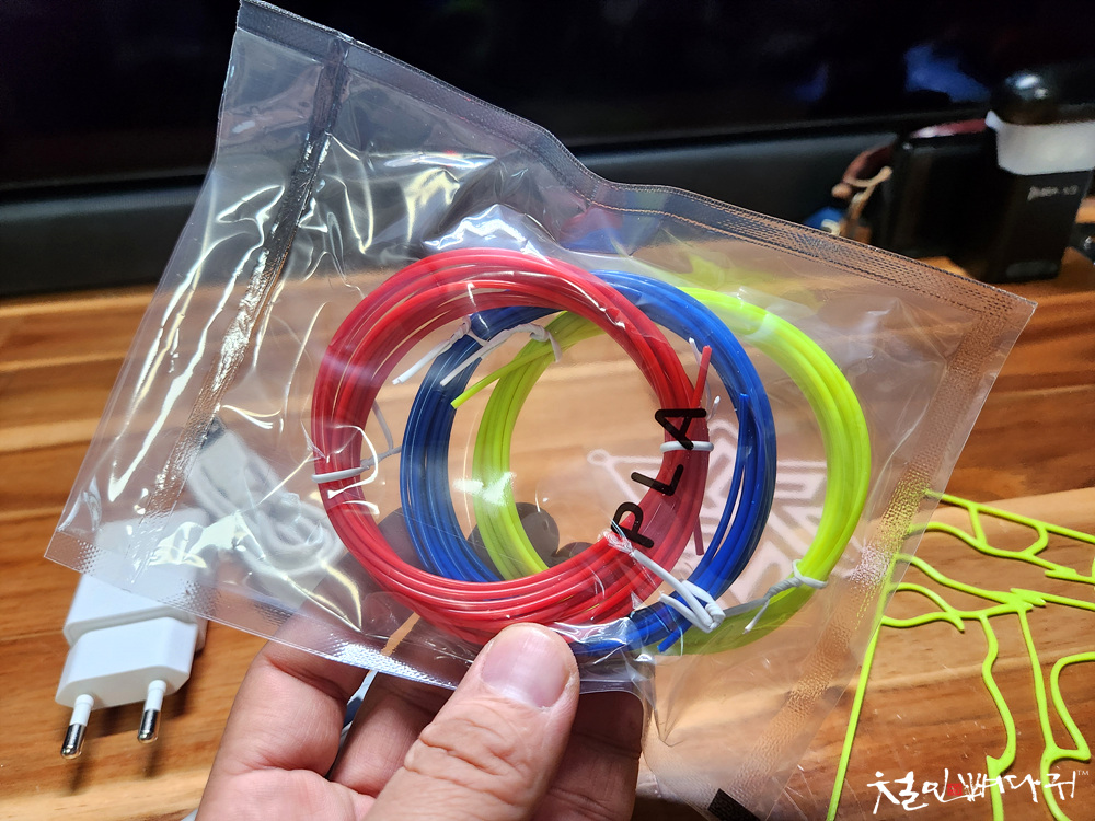 PLA필라멘트 3가지 색상이 기본으로 포함되어 있습니다.