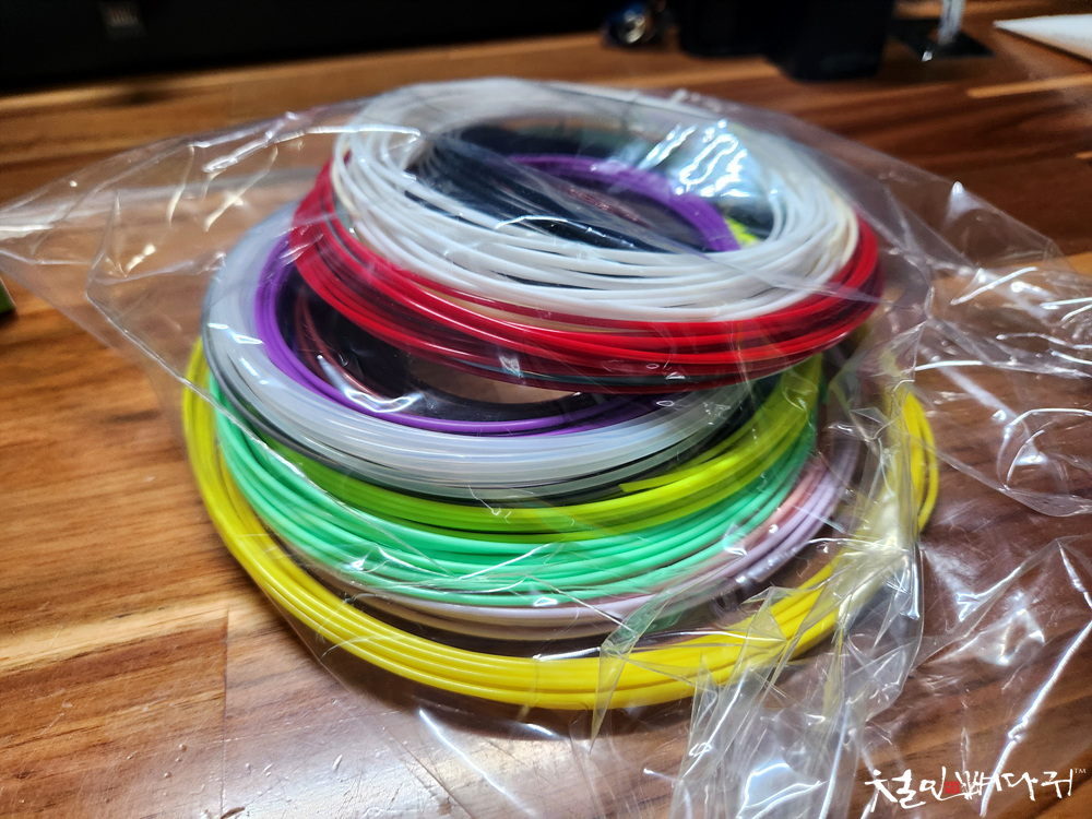 3D펜용 필라멘트가 여러 색상이 서비스처럼 들어있습니다.