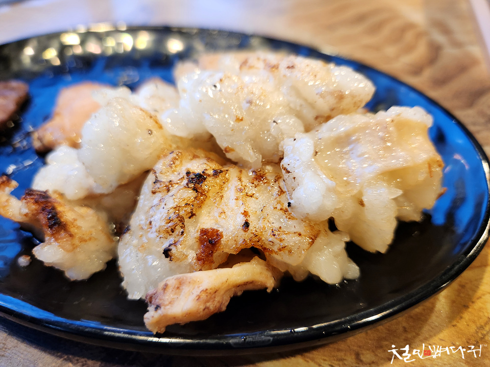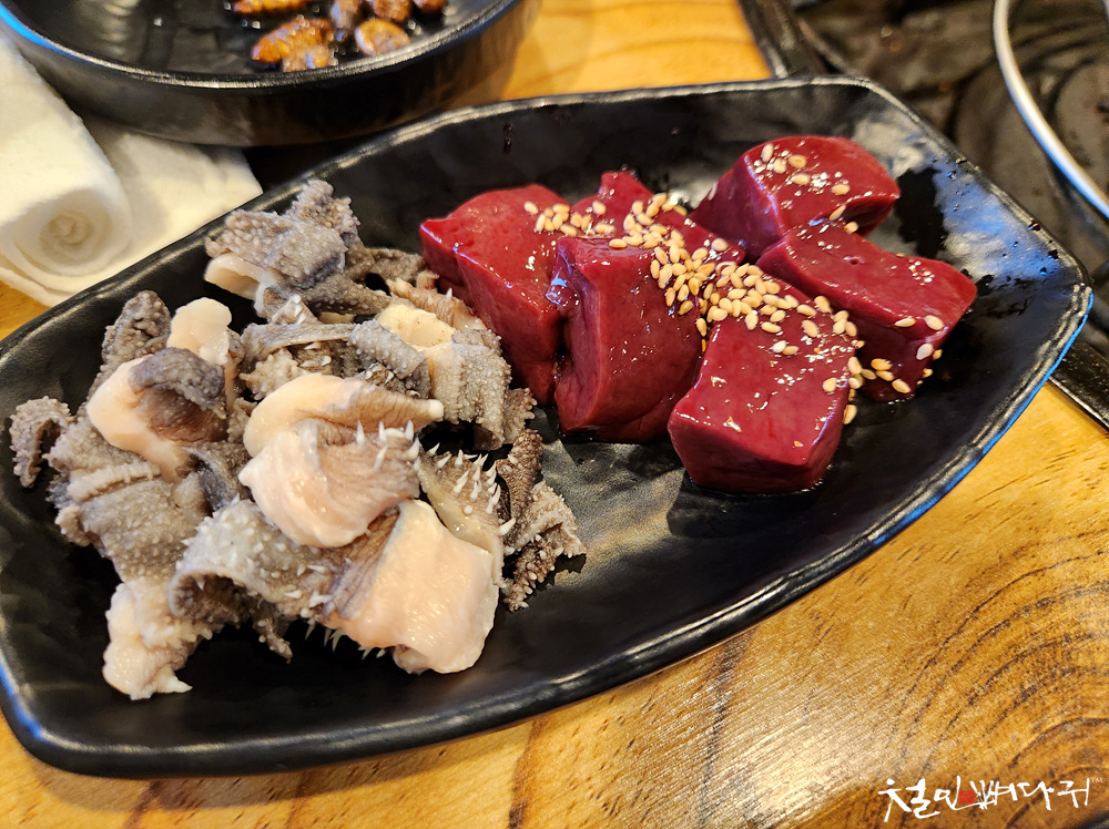 반찬으로 싱싱한 천엽, 간이 나옵니다.