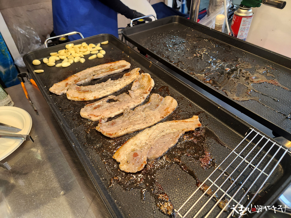삼겹살을 구워서 파는 곳에서는 삼겹살김밥도 판매합니다.