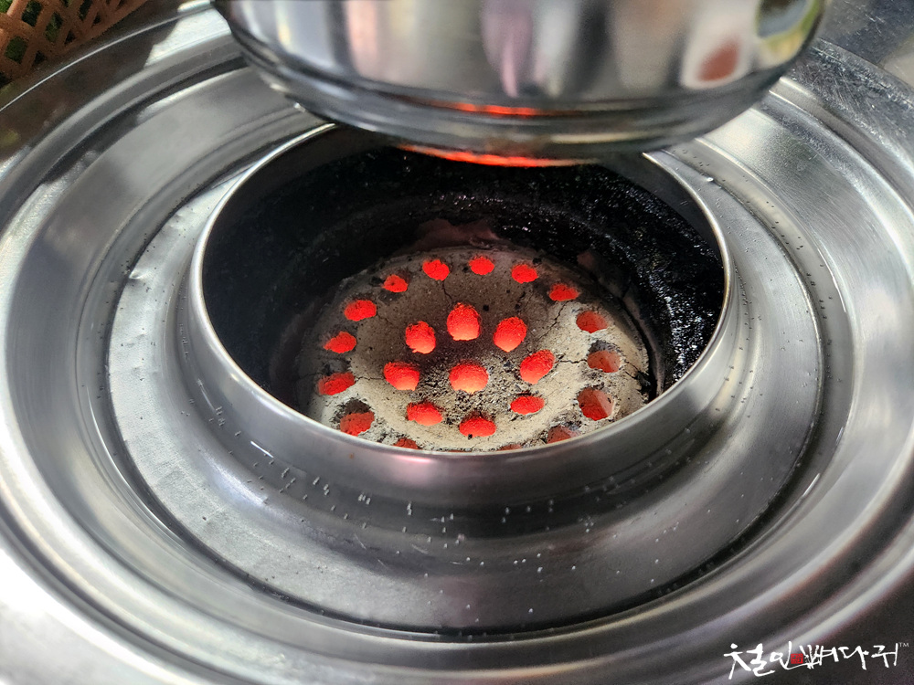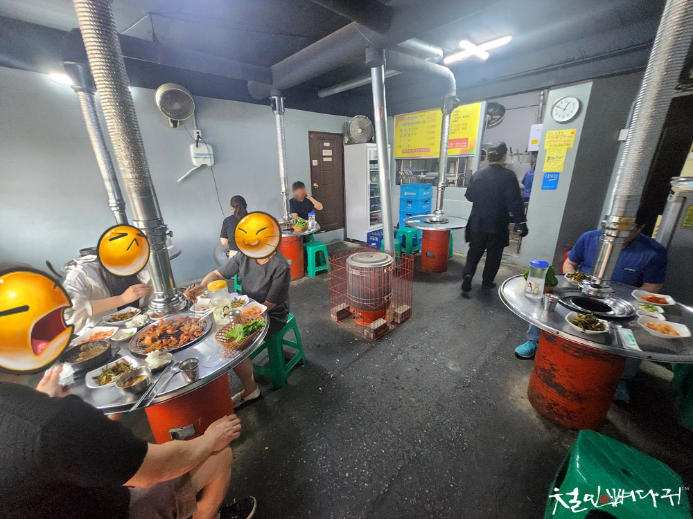 식당에 들어가면, 홀에는 6개 정도의 연탄불을