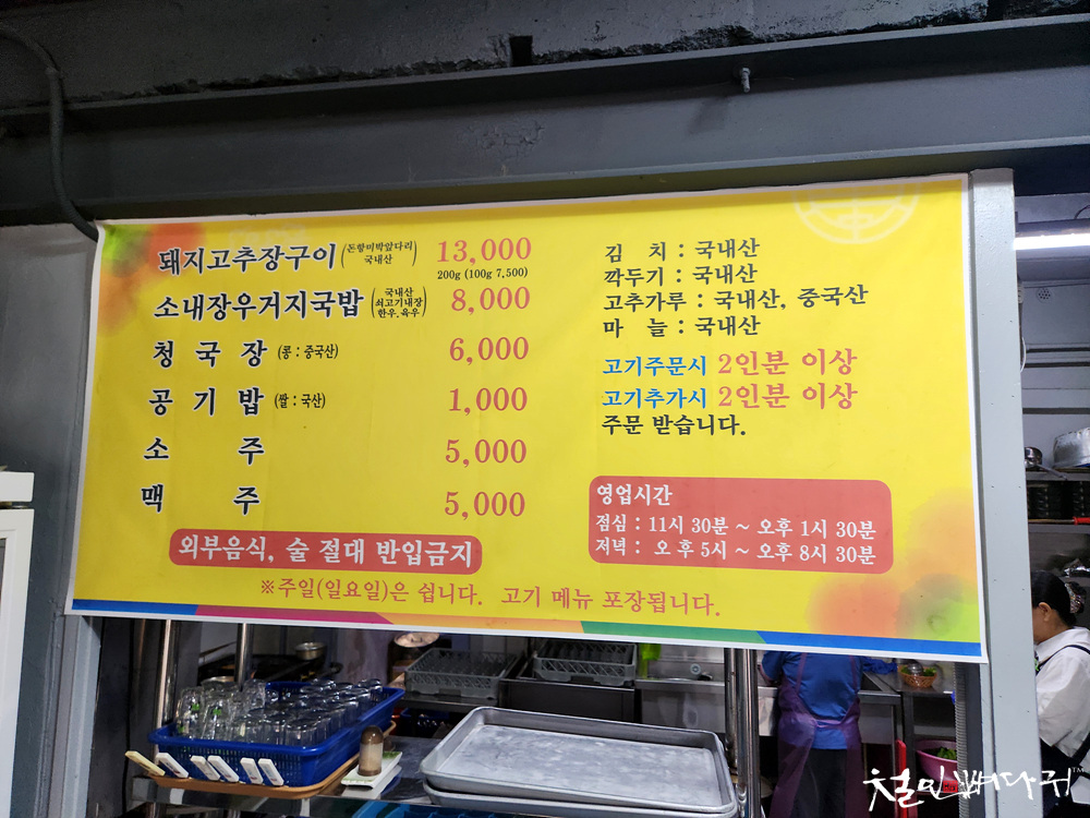 청국장, 소내장우거지국밥은 고기 2인분 주문하면
