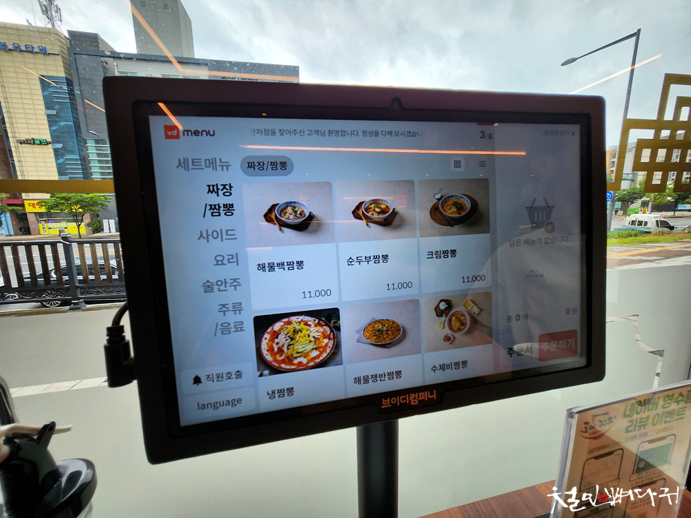 주문은 테이블에 있는 태블릿에서 진행합니다.