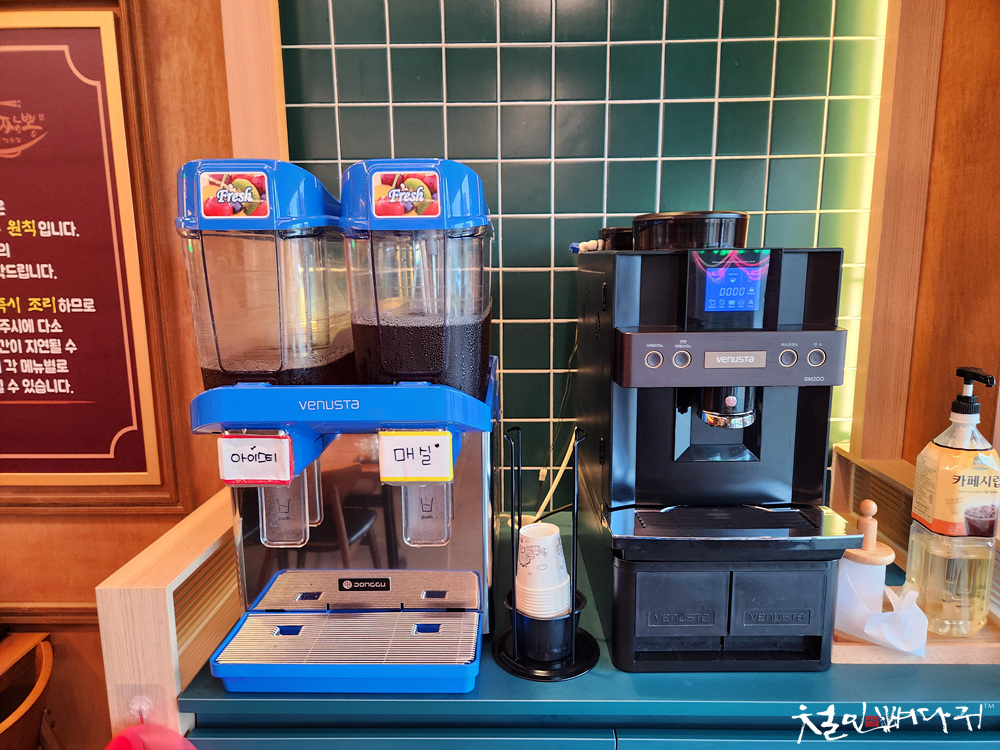입구 옆에 아이스티. 매실. 커피가 있었고,