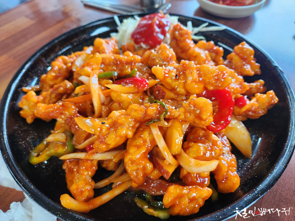 일행이 많아서 테이블마다 사천탕수육