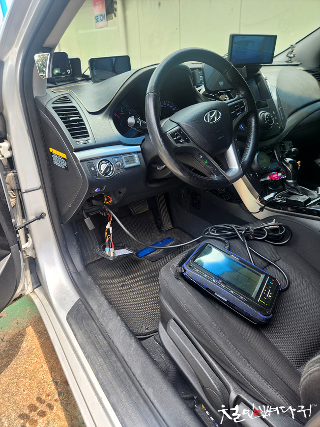 진단기를 차량의 OBD2 단자에 연결해서