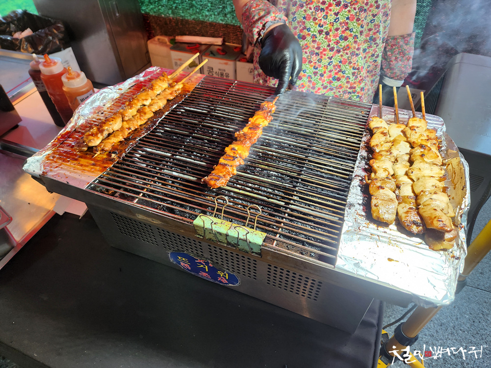 식사를 하지 않으려고, 즉석에서 구워 팔던 닭꼬치를 구입해서 하나 먹었는데,