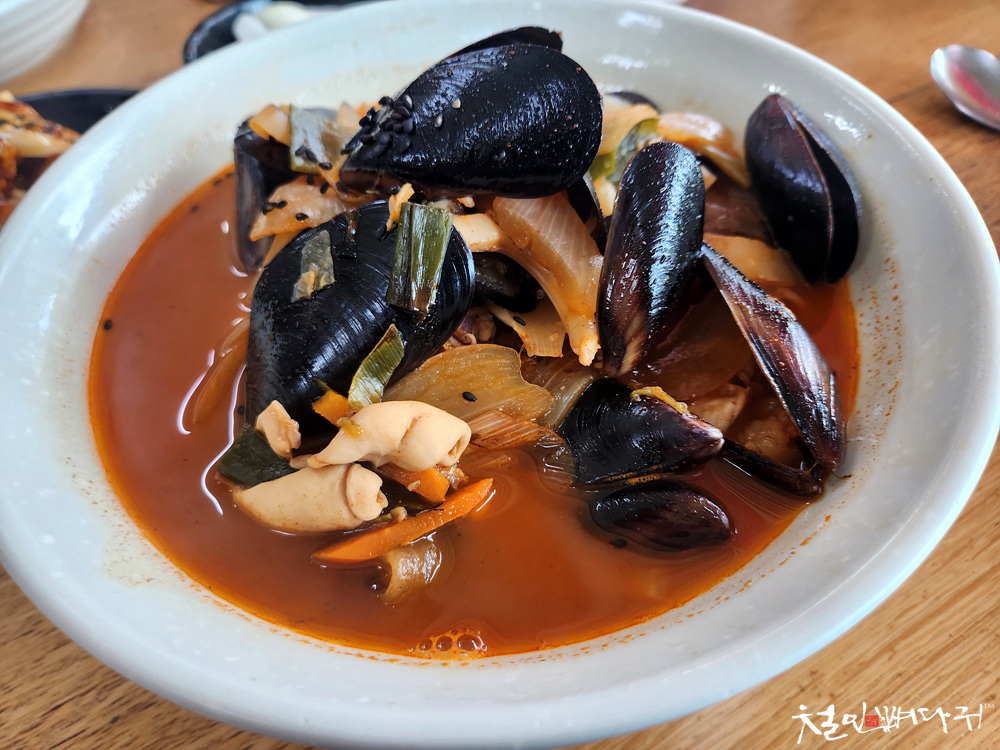 홍합이 들어간 칼짬뽕은 칼국수면을 사용합니다.
