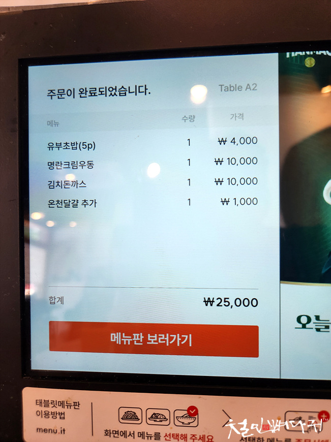 메인 메뉴 2개 주문하고, 사이드로 유부초밥도 주문했습니다.