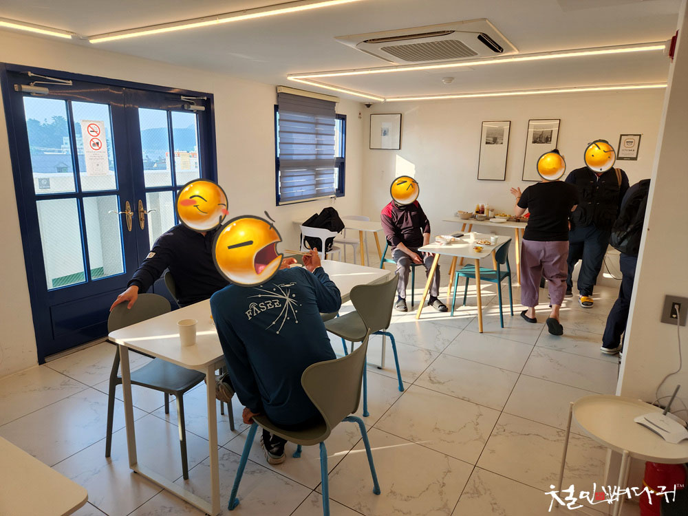 모두 오늘 같이 일할 사람들이라 아침 먹으러 왔습니다.