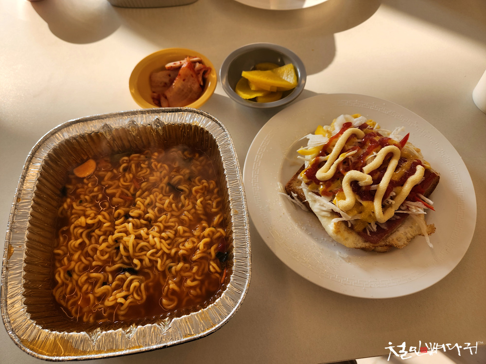 즉석라면기계로 바로 라면도 하나 끓였습니다.