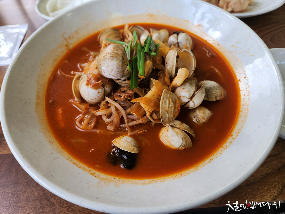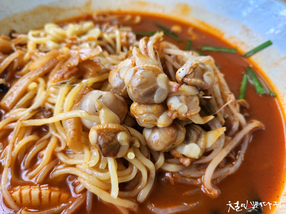 얼큰한 짬뽕에 동죽이 담고 있는 탱글한 수분과