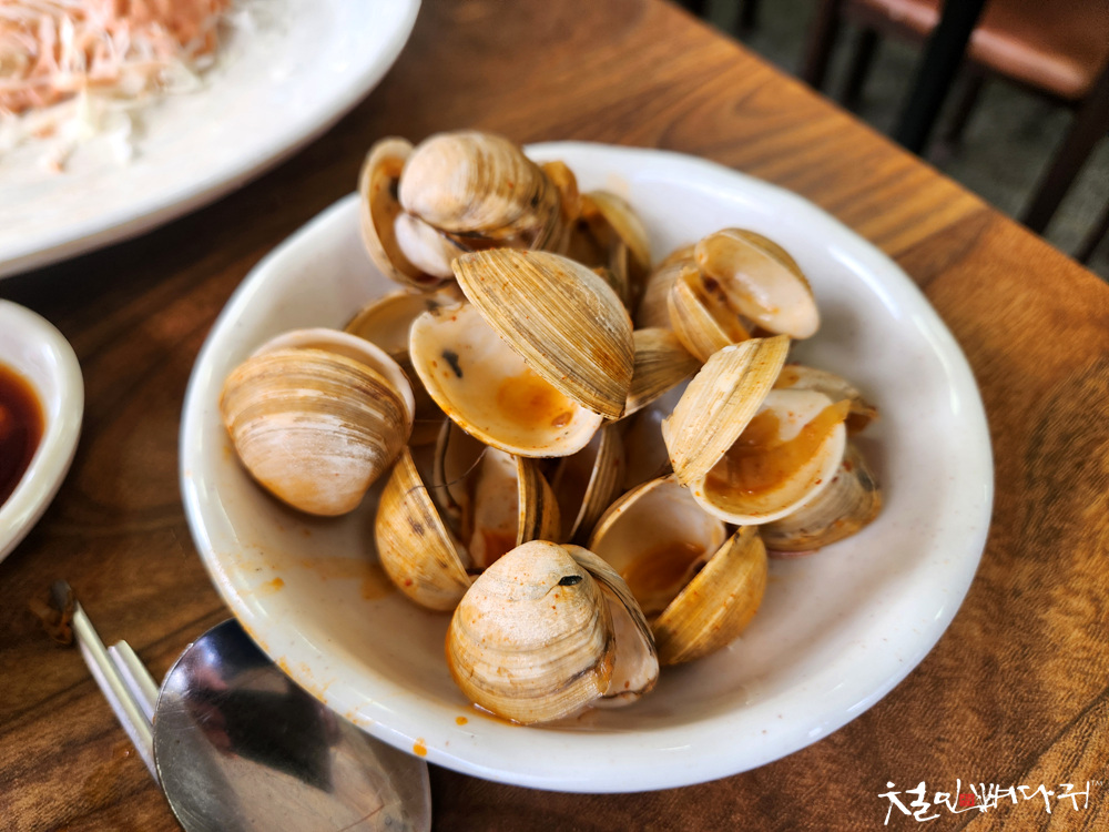 커다란 짬뽕그릇에 동죽이 가득 담겨 나옵니다.