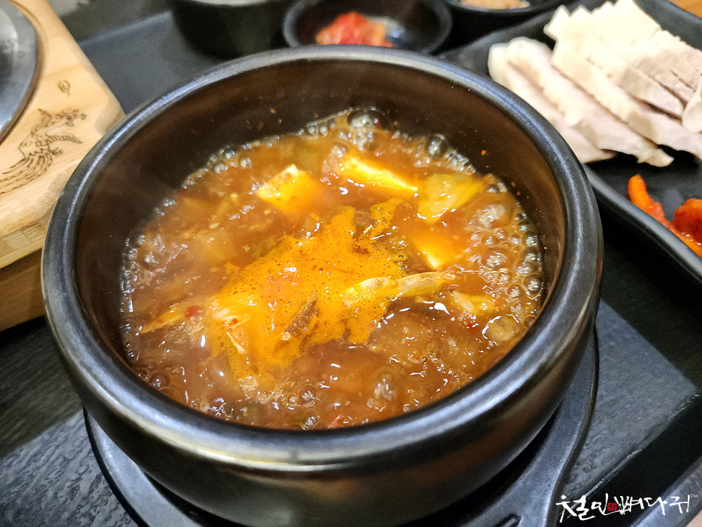 내륙 깊숙한 곳이지만, 꽃게가 들어 있는 된장찌개 맛있습니다.
