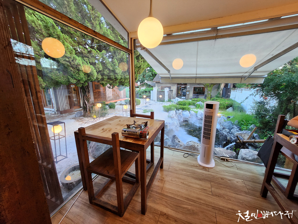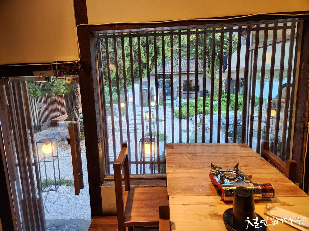 식당 일부 구간은 연못이 있는 마당 쪽으로 통유리로