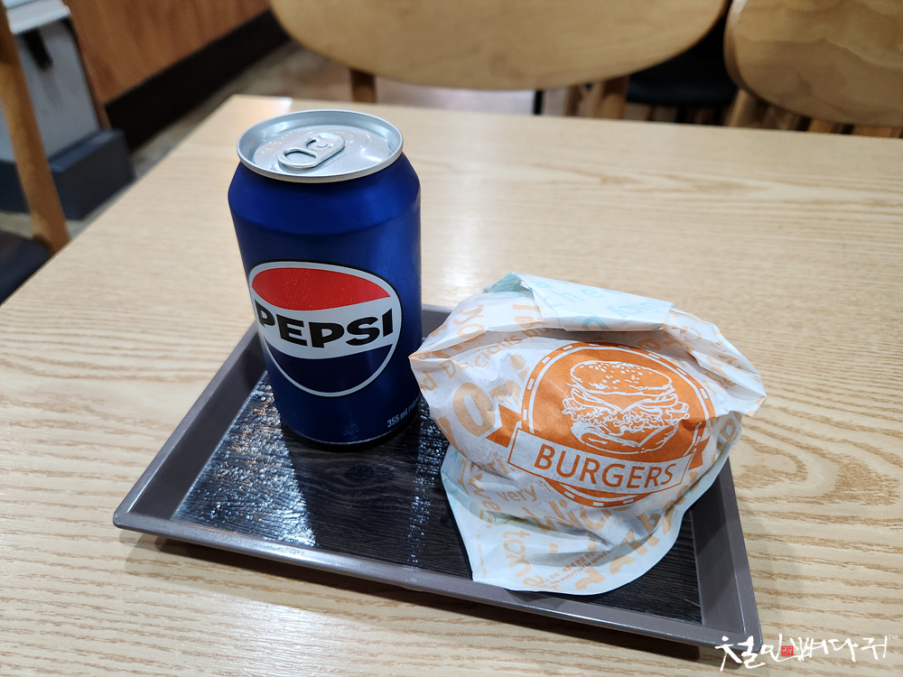 캔음료가 포함된 수제버거를 주문했습니다.