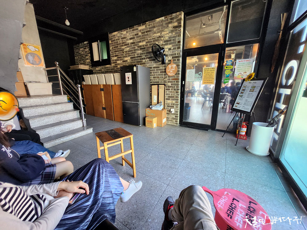 식당 입구 앞에 대기석이 있어서 대기자명부에
