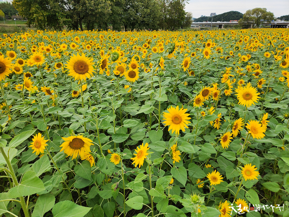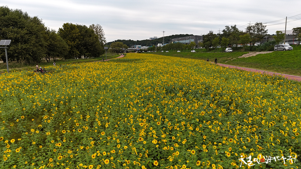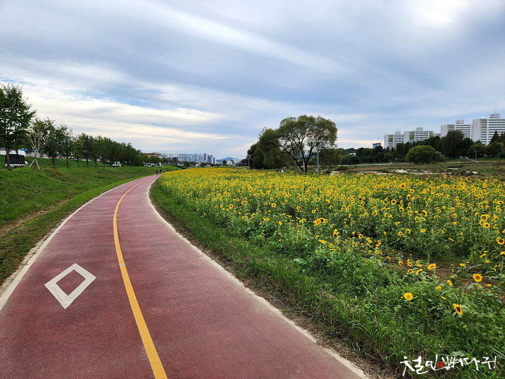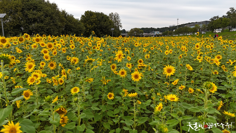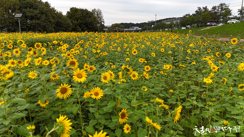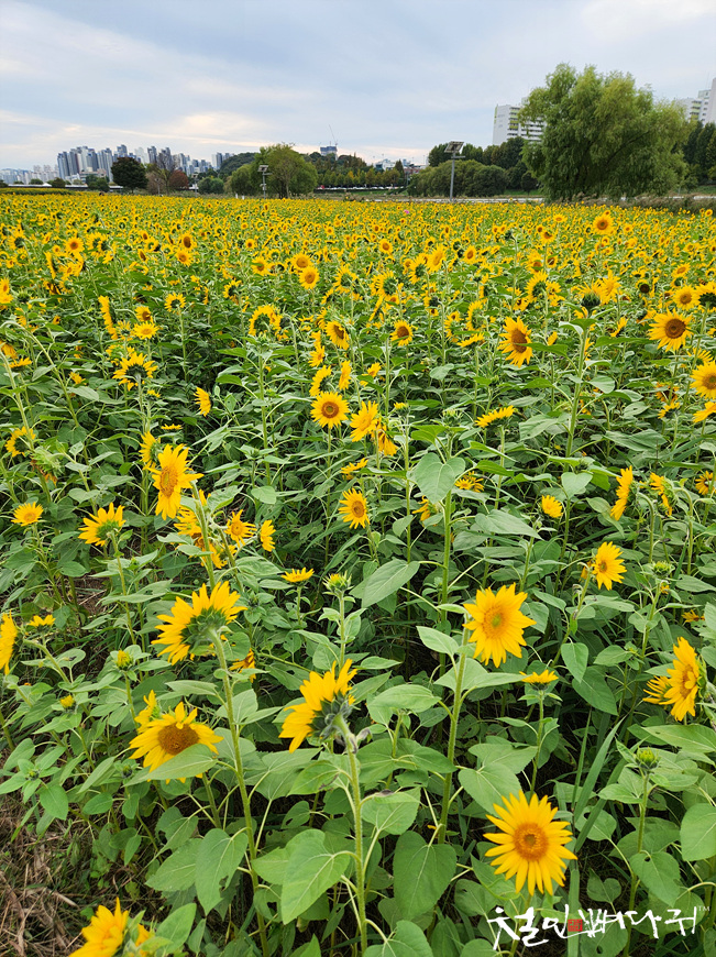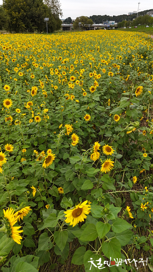 대전천변 여기저기에 해바라기들이 피었습니다.