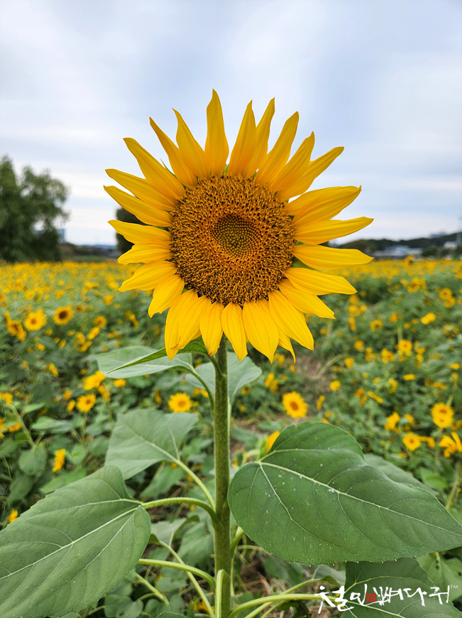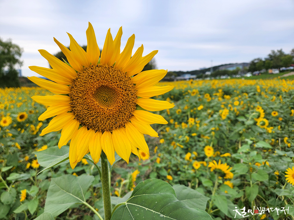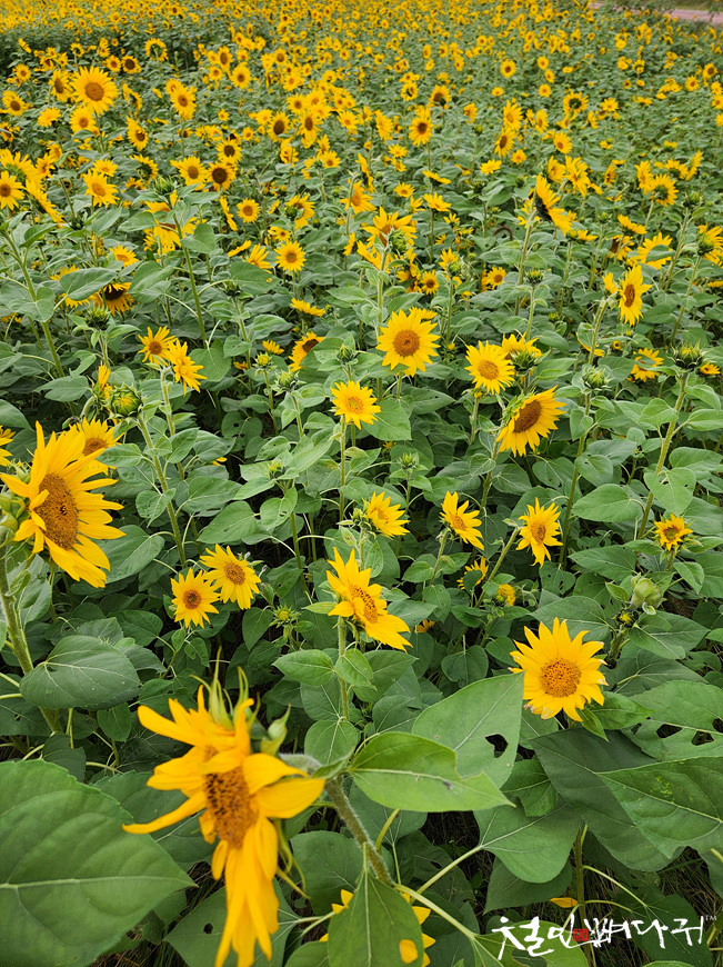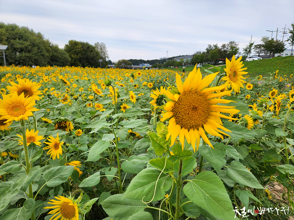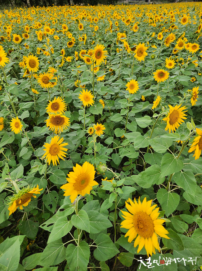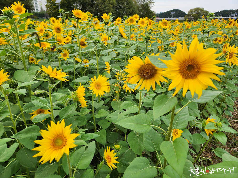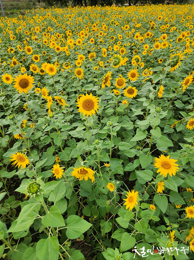 대전천변 여기저기에 해바라기들이 피었습니다.