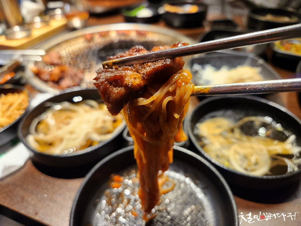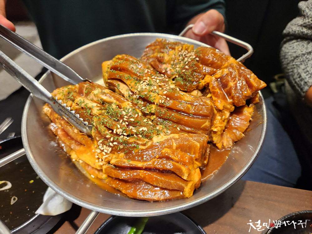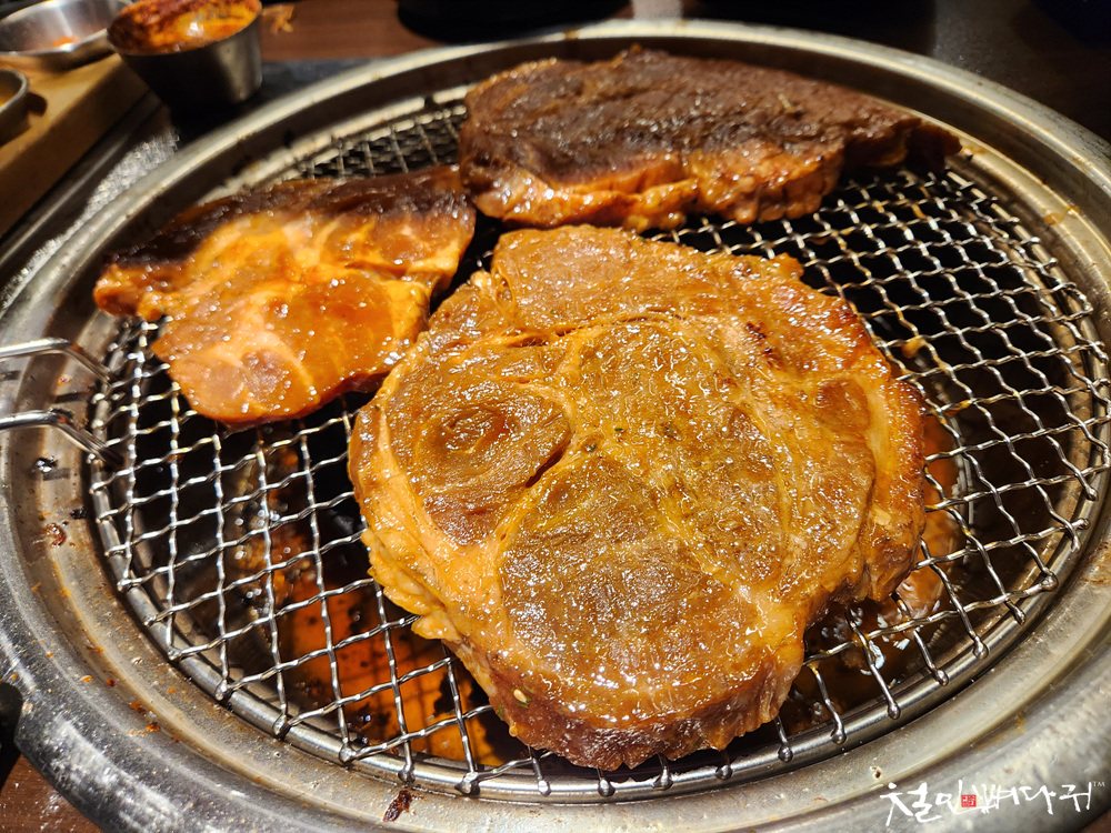 삼겹살을 먹을만큼 먹고 양념갈비로 바꾸게 됩니다.