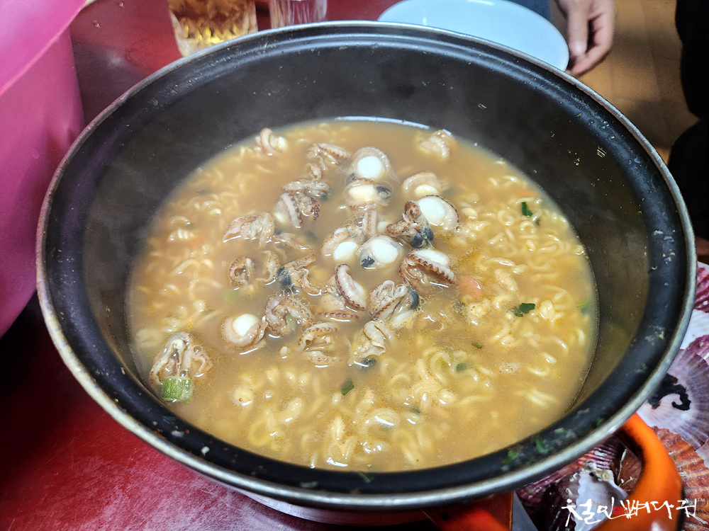 가리비국물에 라면을 끓였더니 많이 짭니다.