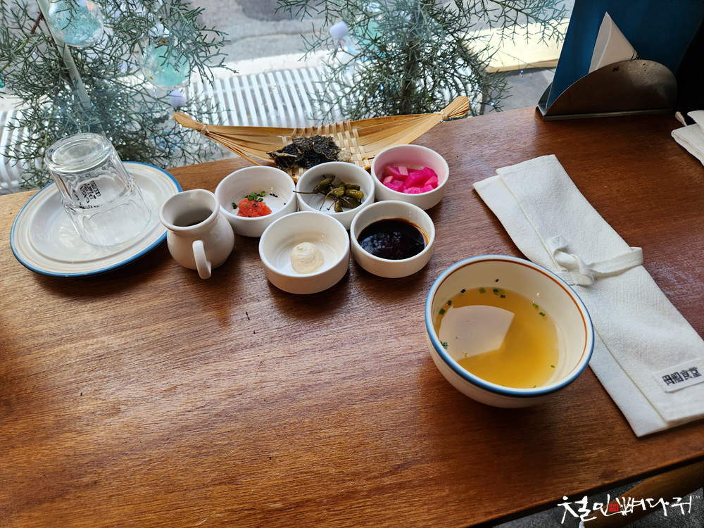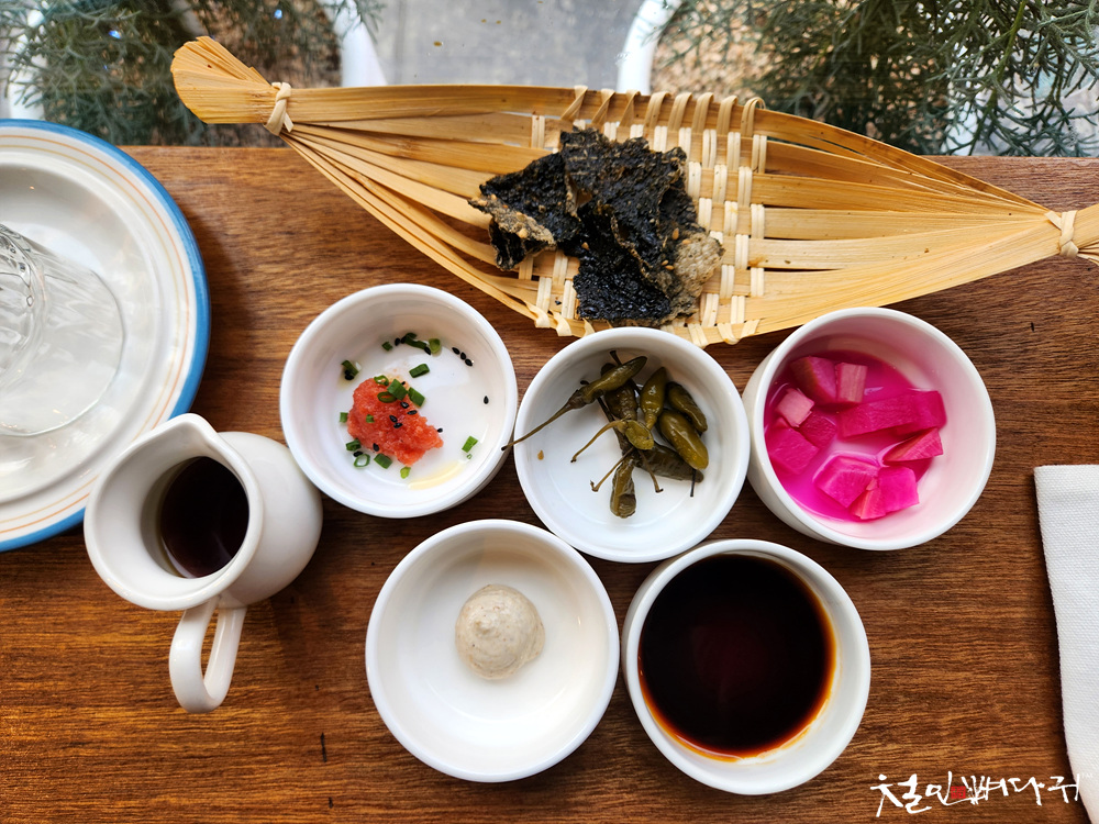 주문한 음식 나오기 전에 기본반찬들을 세팅해 줍니다.