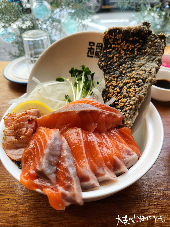 연어덮밥 특은 3,000원 더 비싸고 연어뱃살인가 추가됩니다.