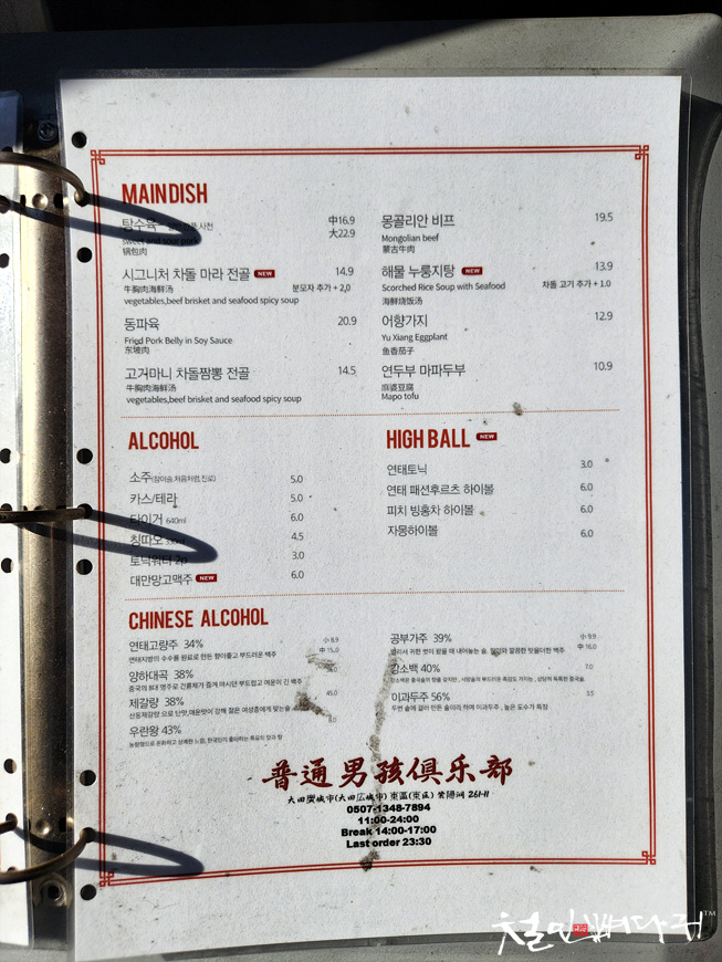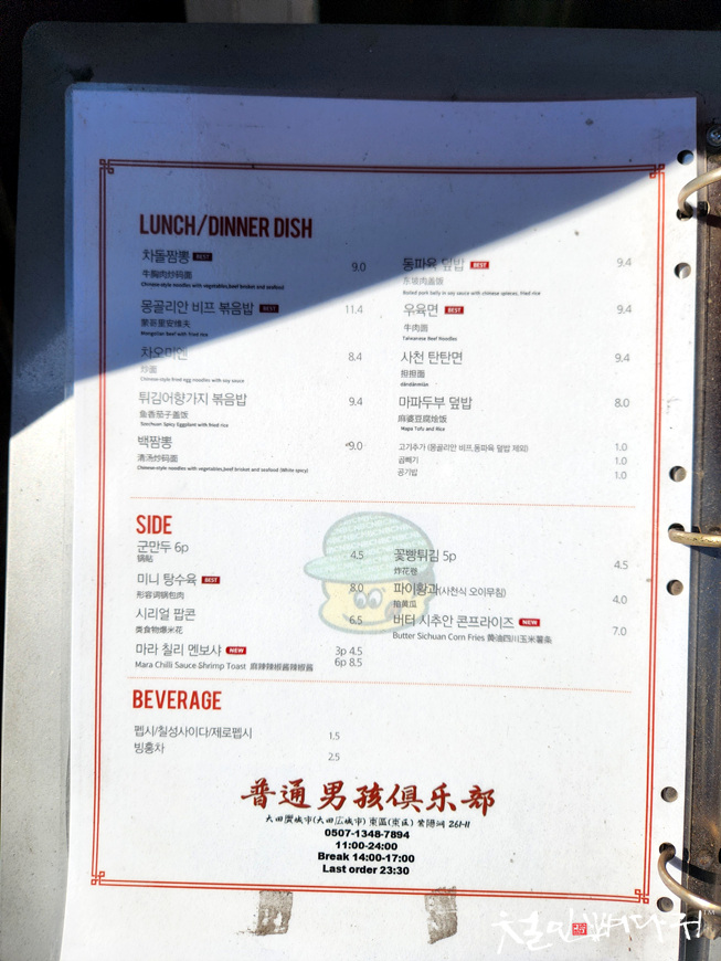 밖에서 메뉴를 볼 수 있는데, 예사롭지 않습니다.