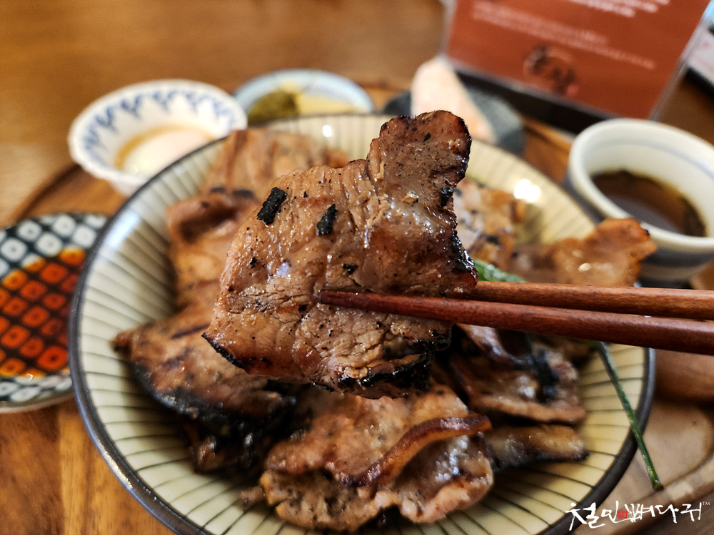 불에 탄흔적과 불향이 있는 고기라서 맛있습니다.