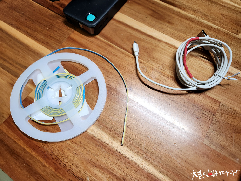 USB케이블 안 쓰는 것, 잘라서 LED에 납땜을 해줍니다.