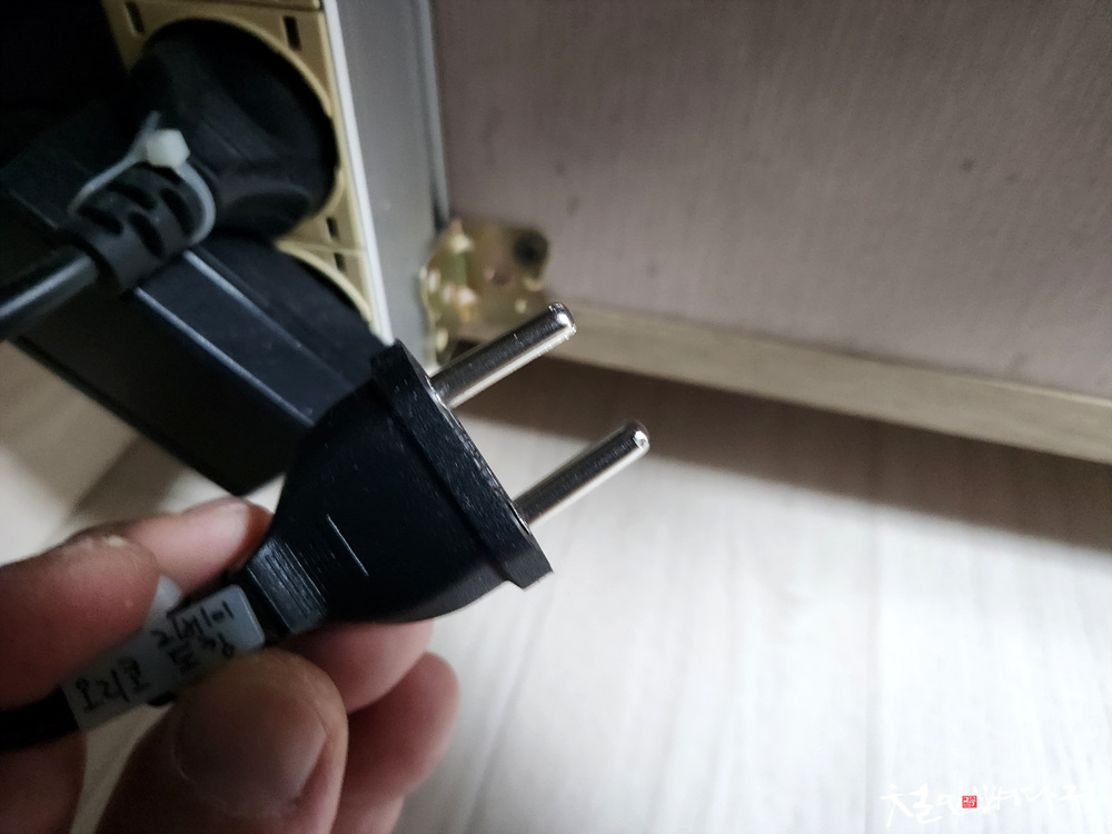 잘 안 꽂히는데, 힘으로 잘 밀어 넣고,