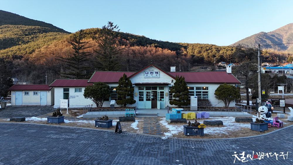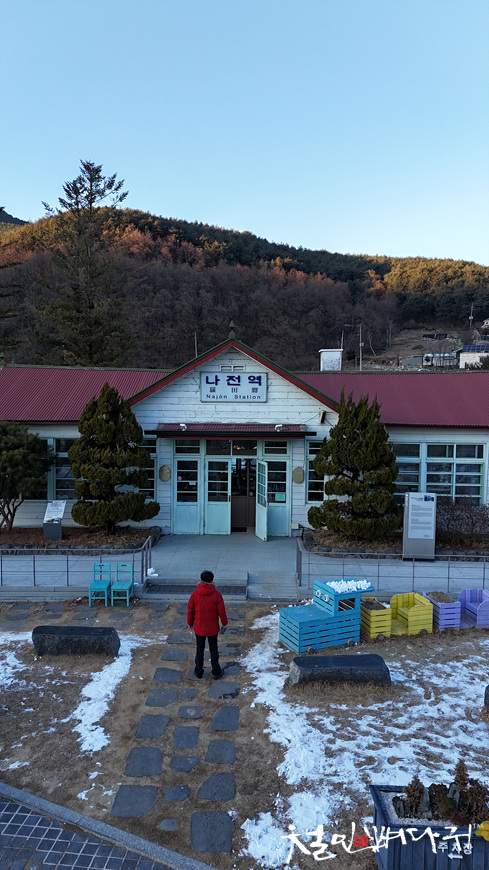 눈 덮인 나전역 주변은 겨울의 쌀쌀함이 있었습니다.