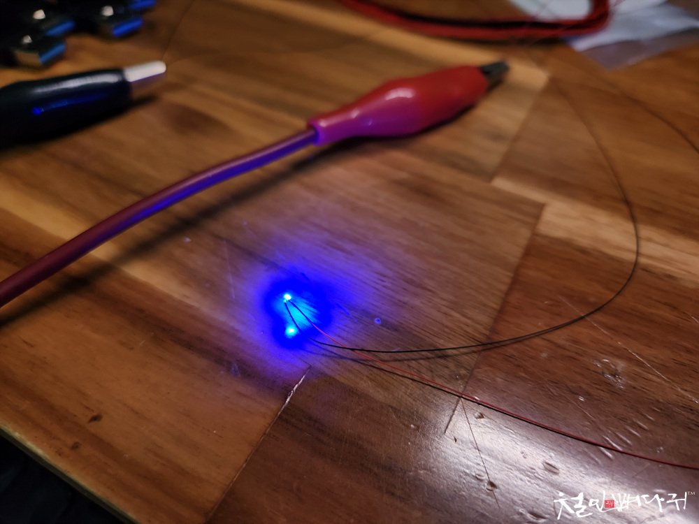 3V의 전원을 인가해주면, 불이 들어옵니다.