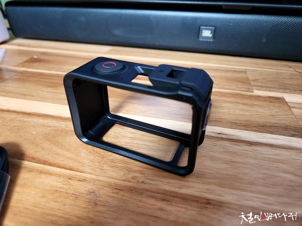 액션캠에 케이지를 장착한 상태