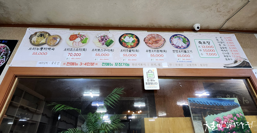 오리 관련 요리들만 있는데, 보통 3~4인분이 기준입니다.