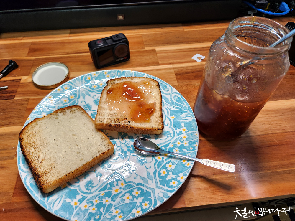 이틀쯤 뒤, 저녁은 식빵에 무화과쨈.