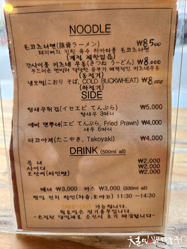 가성비로 제일 괜찮은 메뉴가 차슈벤또(삼겹살)인 듯 보입니다.