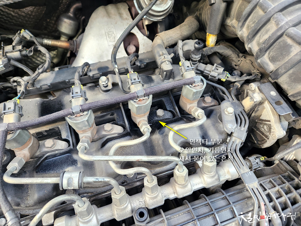 3번째 인젝터 주변이 오일인지, 기름인지