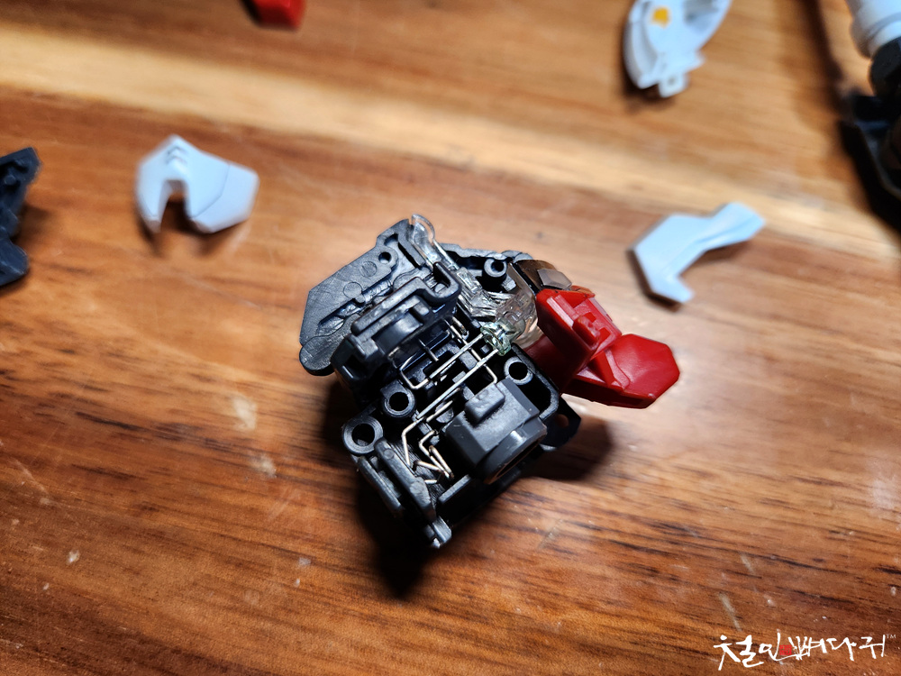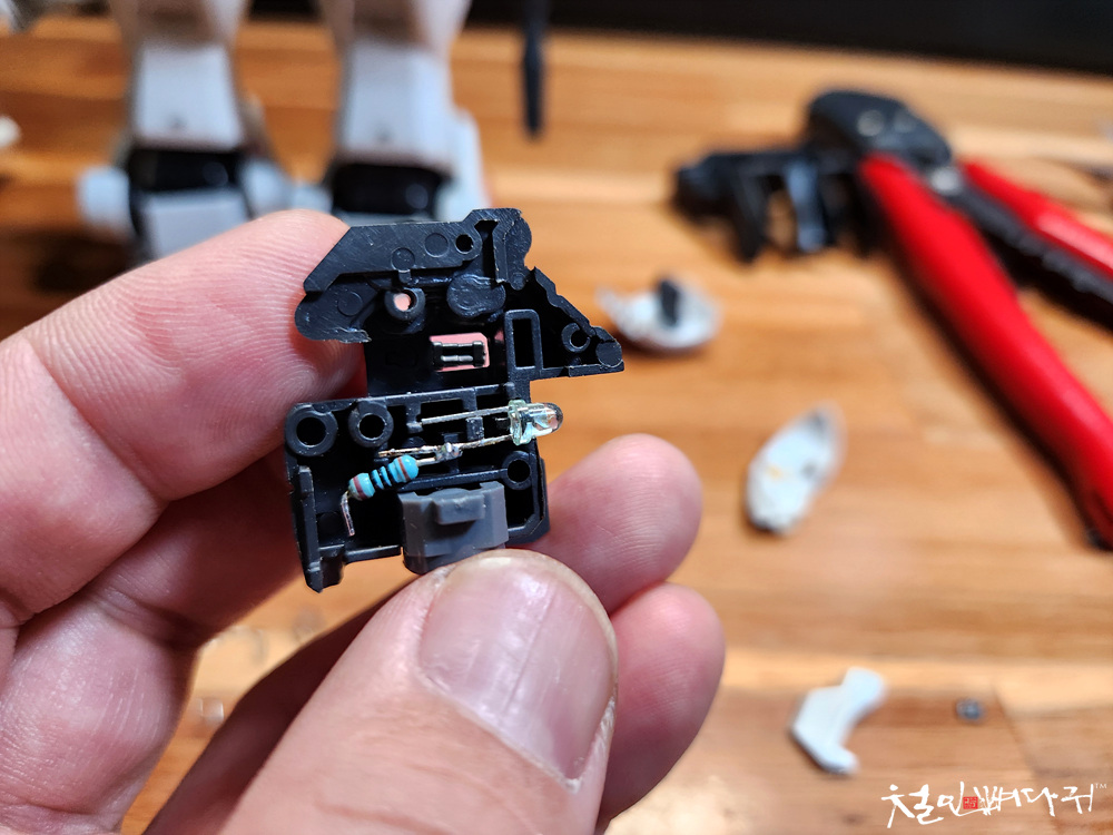 PG 퍼스트건담 머리 안에 LED와 전원공급용