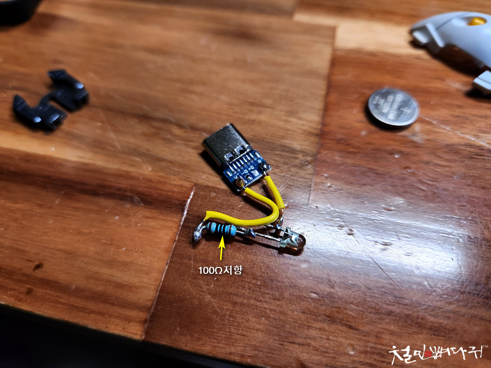 USB-C단자와 저항, LED를 한 몸으로 만들었습니다.