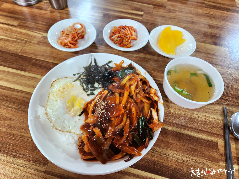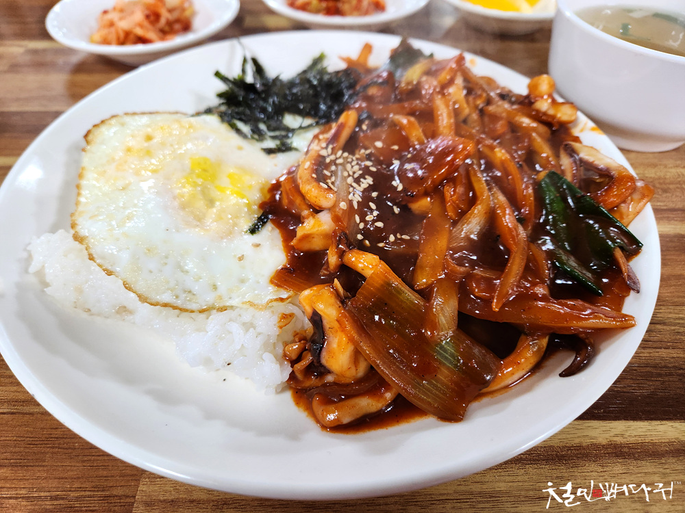 밥 먹으러 갔고, 언제나처럼 오징어덮밥 주문했습니다.