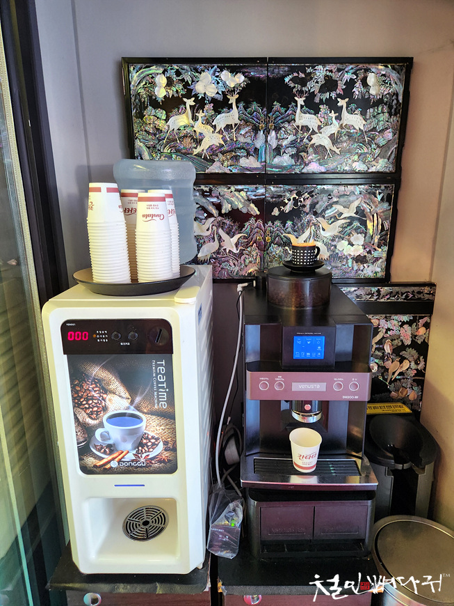 커피 한잔 뽑아서 마시면서 나왔습니다.