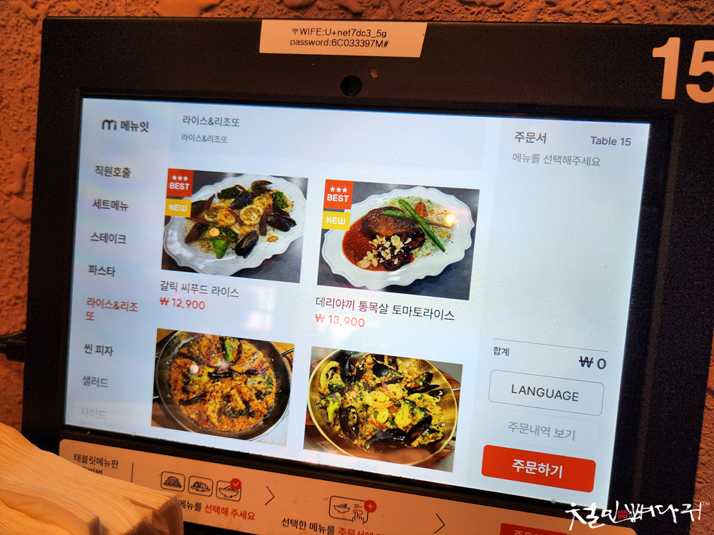 테이블의 태블릿으로 주문합니다.