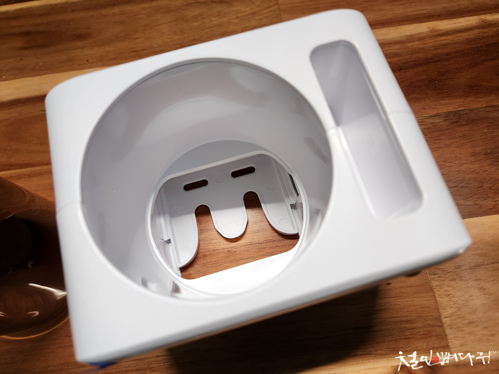 상단은 양치할 때 사용하는 컵을 뒤집어서